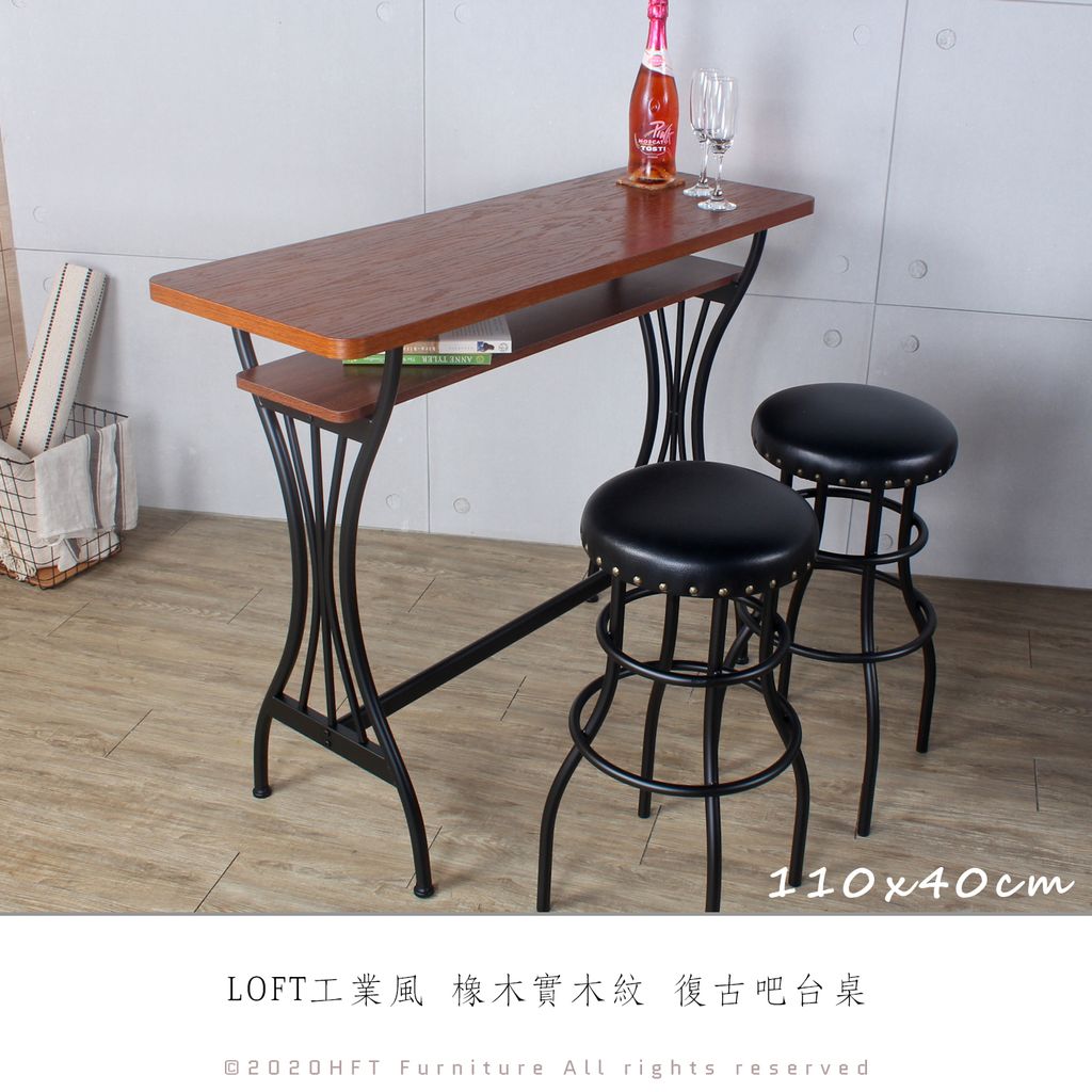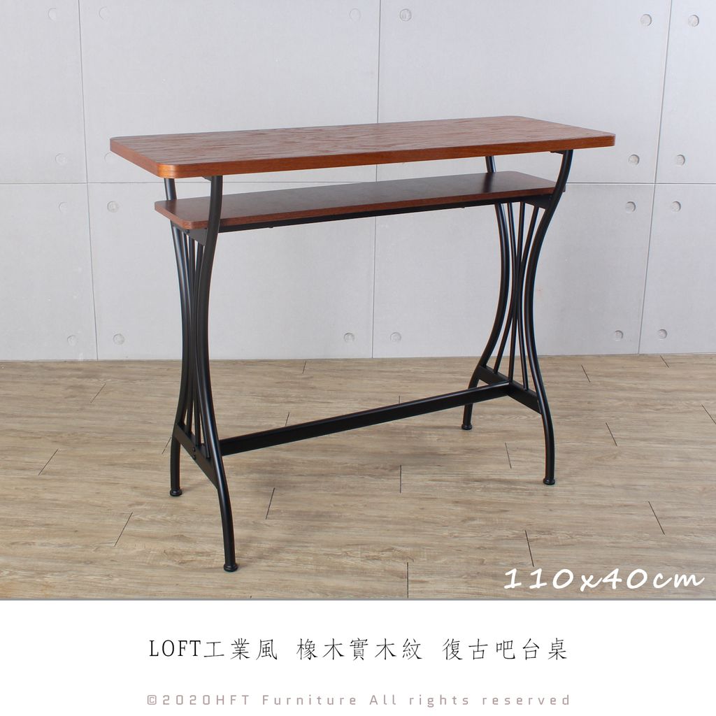 工業風 橡木實木紋 復古吧桌 / 110CM