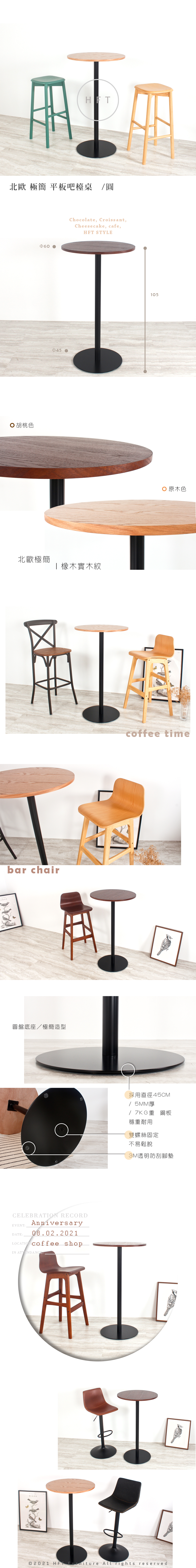 HFT-0077 北歐 極簡 平板圓吧桌 原木色 / 胡桃色