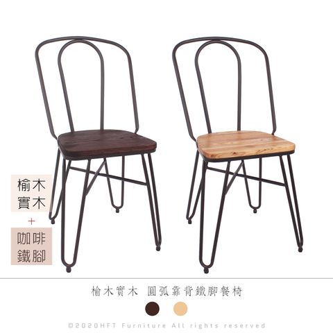 HFT-0040 榆木實木 圓弧靠背鐵腳餐椅 深咖色/原木色