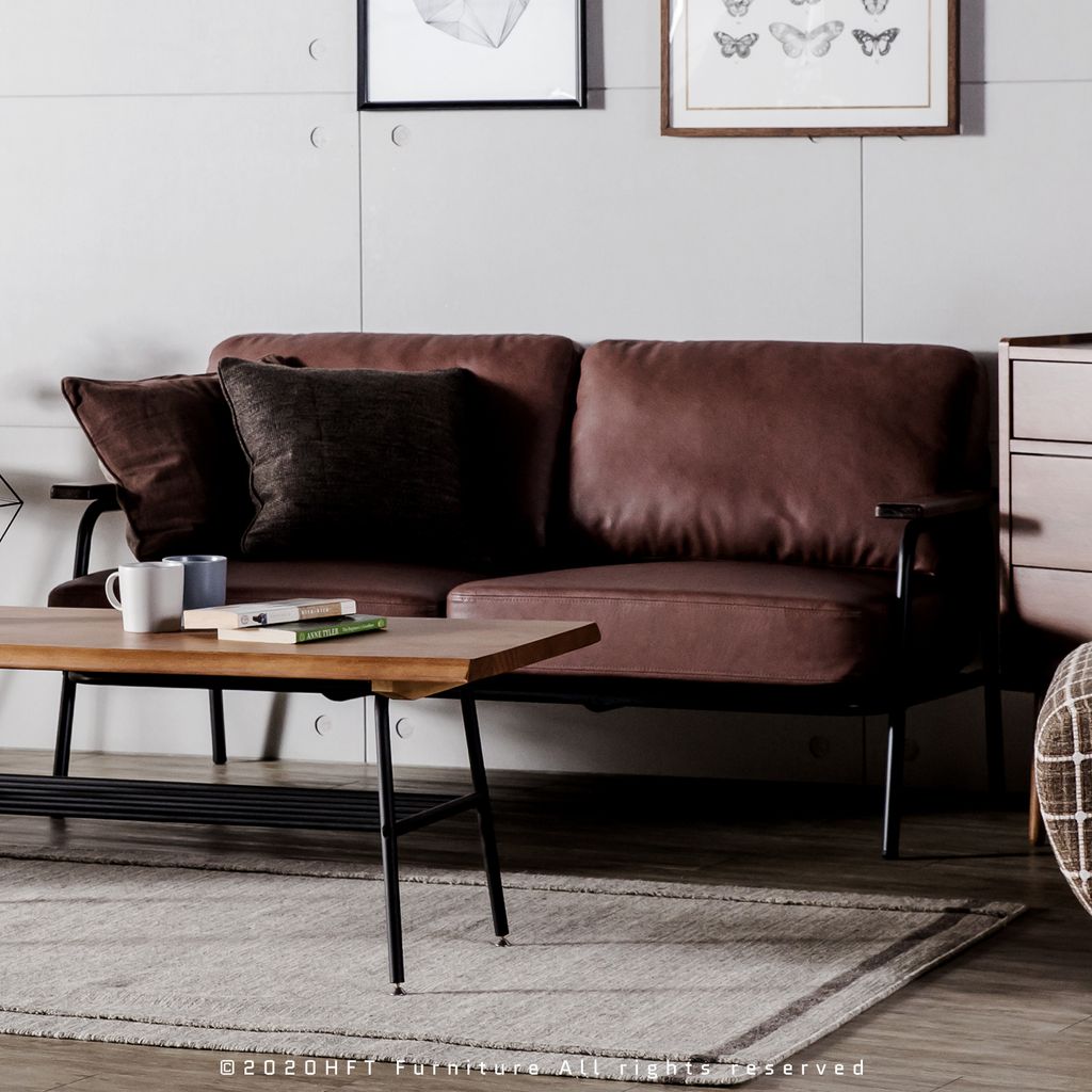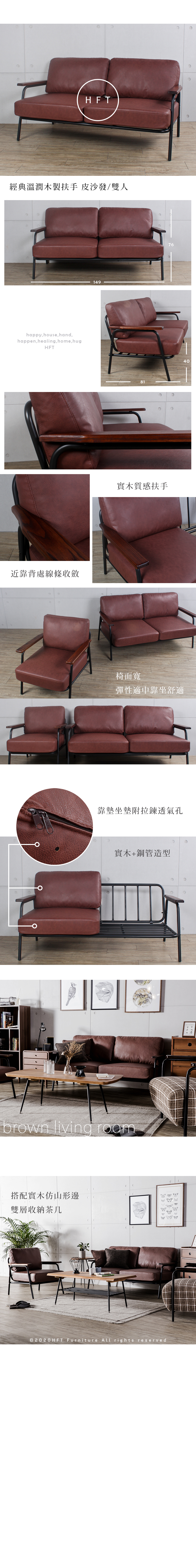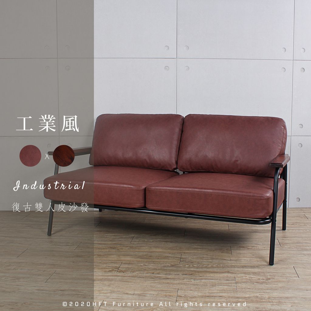 HFT-0055 北歐復古 經典溫潤木製扶手 皮沙發 / 雙人