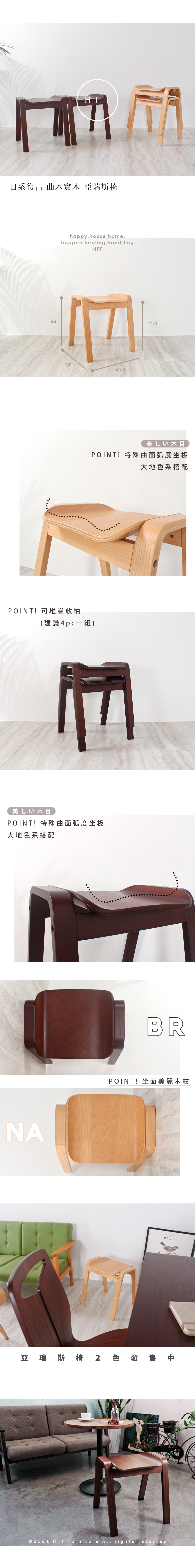 HFT-0029 日系 亞瑞斯椅 曲木實木椅凳 胡桃 / 原木色