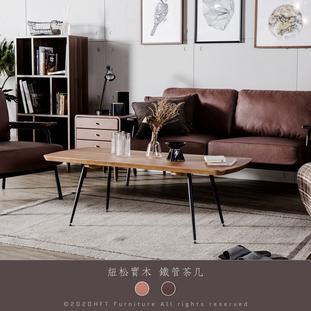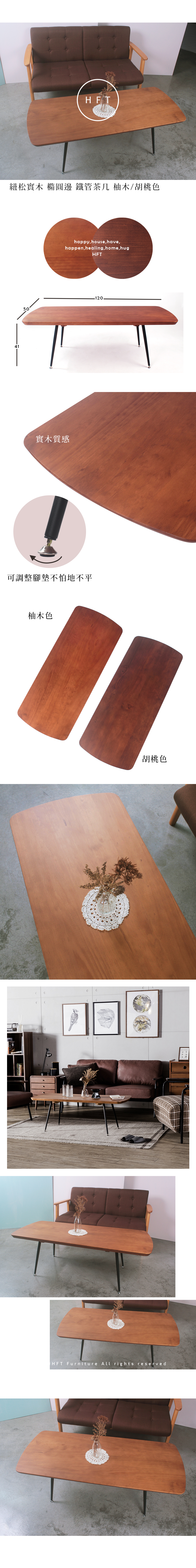 紐松實木 橢圓邊 鐵管茶几 柚木/胡桃色