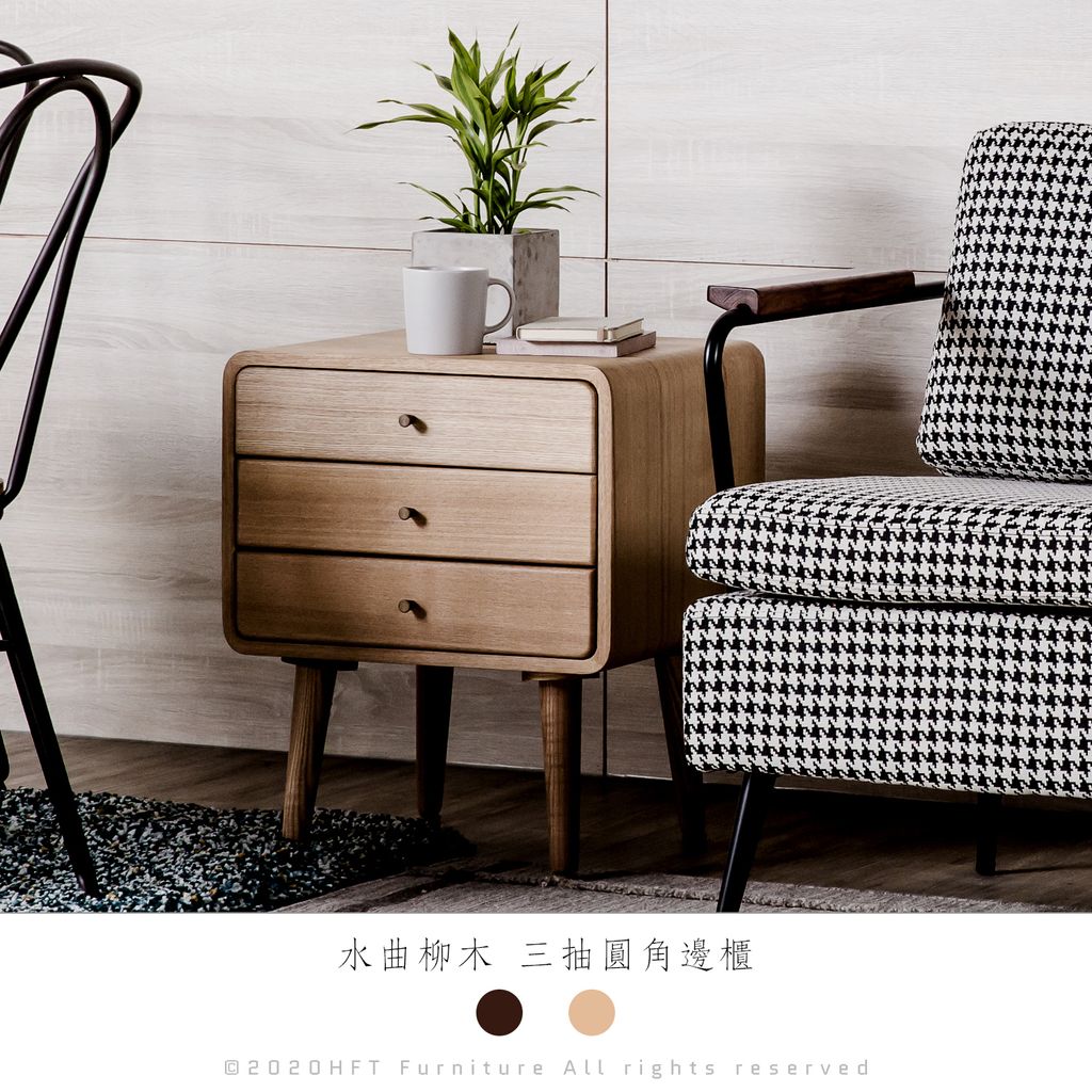 HFT-0034 北歐 日系復古 水曲柳木 三抽圓角邊櫃 / 原木色