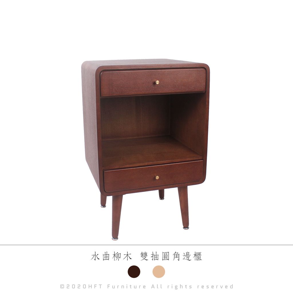 HFT-0035 北歐 日系復古 水曲柳木 雙抽圓角邊櫃 / 胡桃色