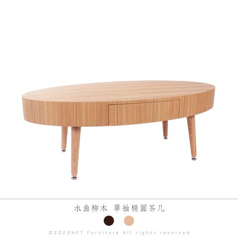 HFT-0028 北歐 日系復古 水曲柳木 單抽橢圓茶几 / 胡桃色