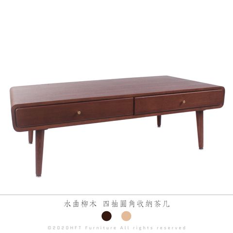 HFT-0036 北歐 日系復古 水曲柳木 四抽圓角收納茶几 / 胡桃色