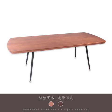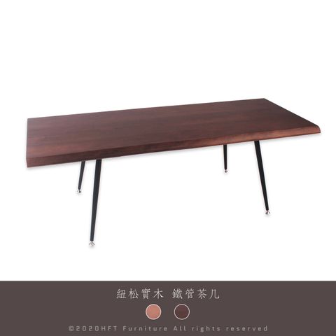 日系復古 紐松實木 仿自然山形邊 鐵管茶几 柚木/胡桃色