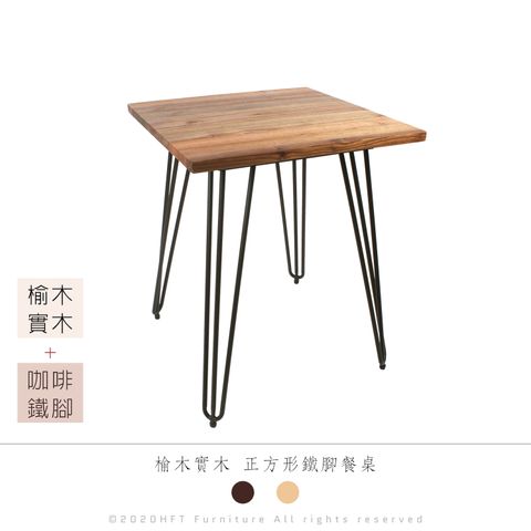 HFT-0038 榆木實木 正方形鐵腳餐桌 深咖色/原木色
